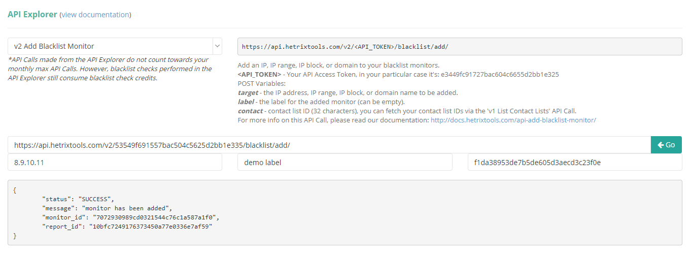Our simple to use API allows you to add, edit, and remove your blacklist monitors effortlessly, so you can integrate our blacklist monitoring service directly into your own service or platform. Furthermore, you can use our API to simply fetch the current blacklisting status for all of your blacklist monitors, to save or process, as you wish, on your end. Our 'api explorer' will help you view and learn more about our API calls, and it's even a place where you can test out the API calls you wish to implement into your own code. You can generate permission based API keys to use in your application, which means that you can configure specific permissions for each of your API keys, so they'd never have access to your entire account.