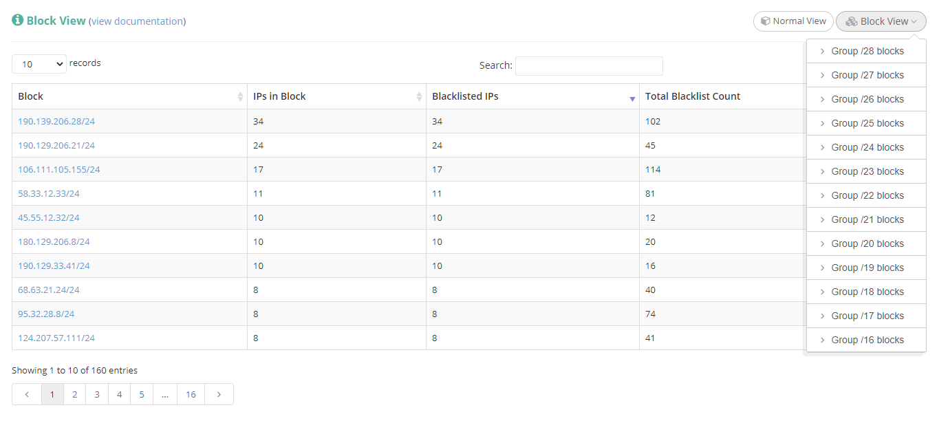 View overall blacklisting status per IP block