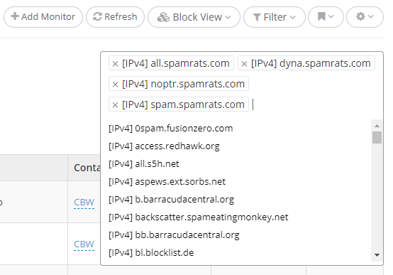 You can easily filter your blacklist monitors per RBL, so only the monitors blacklisted on the selected RBLs will be displayed. This would be very useful when you'll want to start delisting your IPs/domains only from certain blacklists, so you'd want to see only those monitors in your workspace. We also have other filters that can be very helpful, such as: filtering based on recent changes (where you only see the monitors recently blacklisted/delisted); filtering based on monitor type (where you'll see only a certain monitor type, i.e.: IPv4 monitors); or filtering based on whether or not a monitor is blacklisted (so it'll exclude all clean IPs/domains). And, of course, all of the mentioned filters will work very well when combined together, so you can be as precise as possible when it comes to what monitors you'd like to see, for example: view only domains that are blacklisted on the Invaluement blacklist, or view only IPs recently blacklisted/delisted.